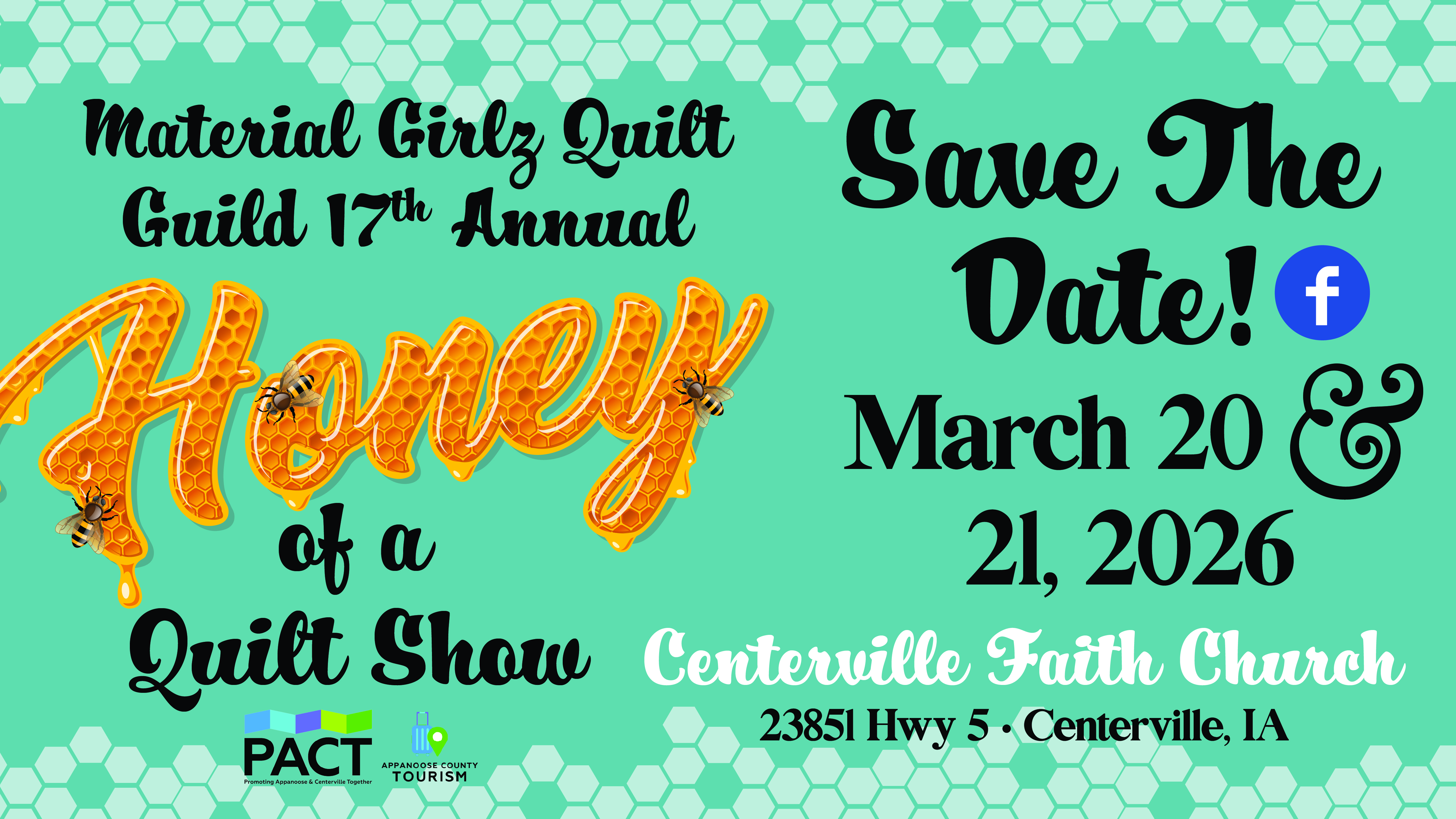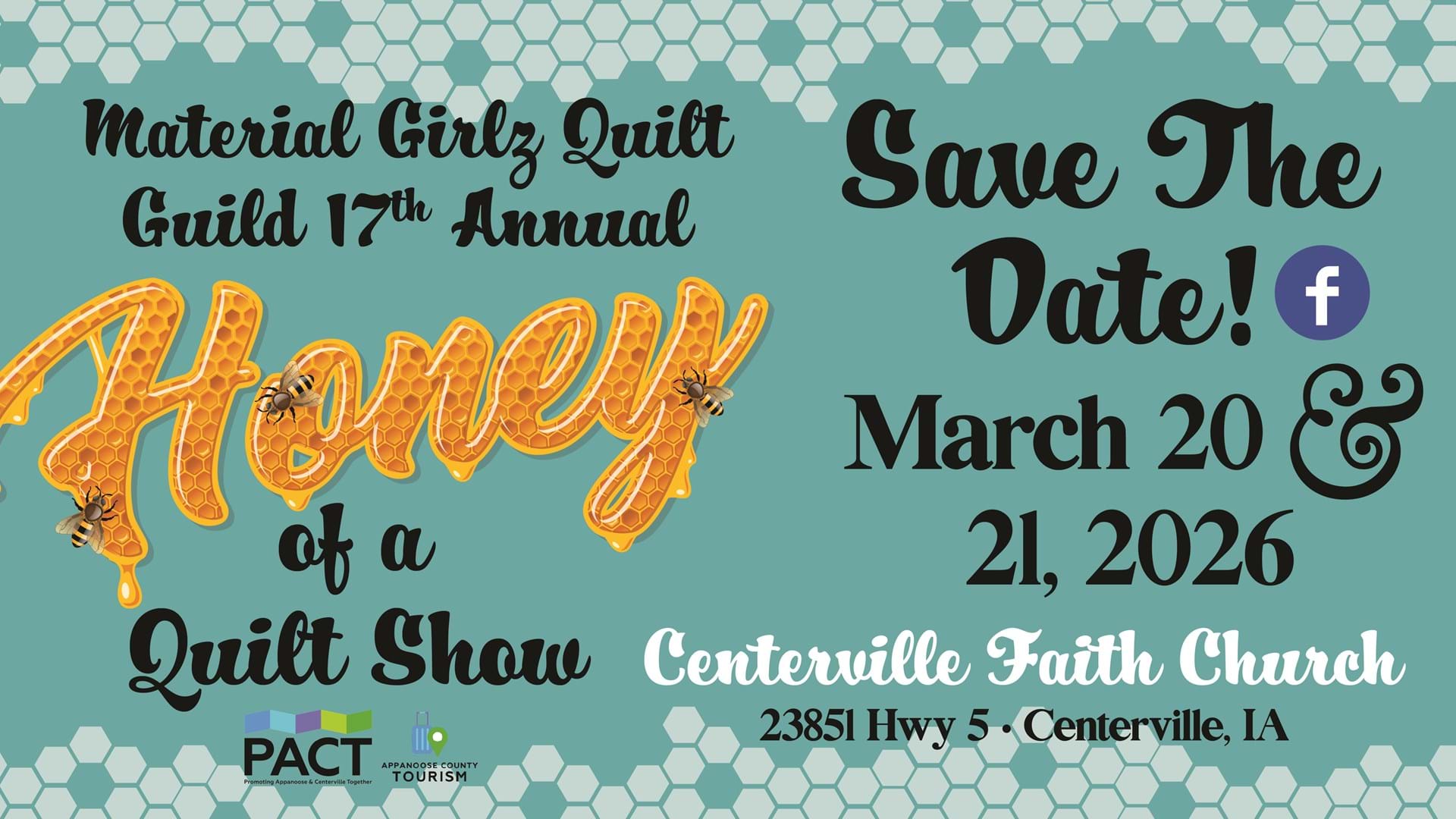 The Material Girlz Quilt Guild invites you to the 17th Annual Honey of a Quilt Show in Centerville, Iowa. This two-day event celebrates the art of quilting and handcrafted creativity, welcoming visitors from across the region to enjoy beautiful displays, shopping, and live demonstrations. The show will feature more than 120 quilts on display, along with 7+ vendors, quilting demos, a gift shop, door prizes, and food available on site. Whether you are a seasoned quilter or simply appreciate fiber art, this event offers something for everyone in a friendly, welcoming atmosphere. Show hours are Friday, March 20 from 9:00 a.m. to 5:00 p.m. and Saturday, March 21 from 9:00 a.m. to 2:00 p.m. Admission is $5 for a day pass or $8 for both days. Special guest Marilyn Rowley, professional quilt appraiser and documentarian, will be available by appointment for quilt appraisals. A Quilt of Valor Ceremony will take place on Saturday at 3:00 p.m., honoring those who have served. For more information, call 641-436-1357 or follow the event on Facebook.