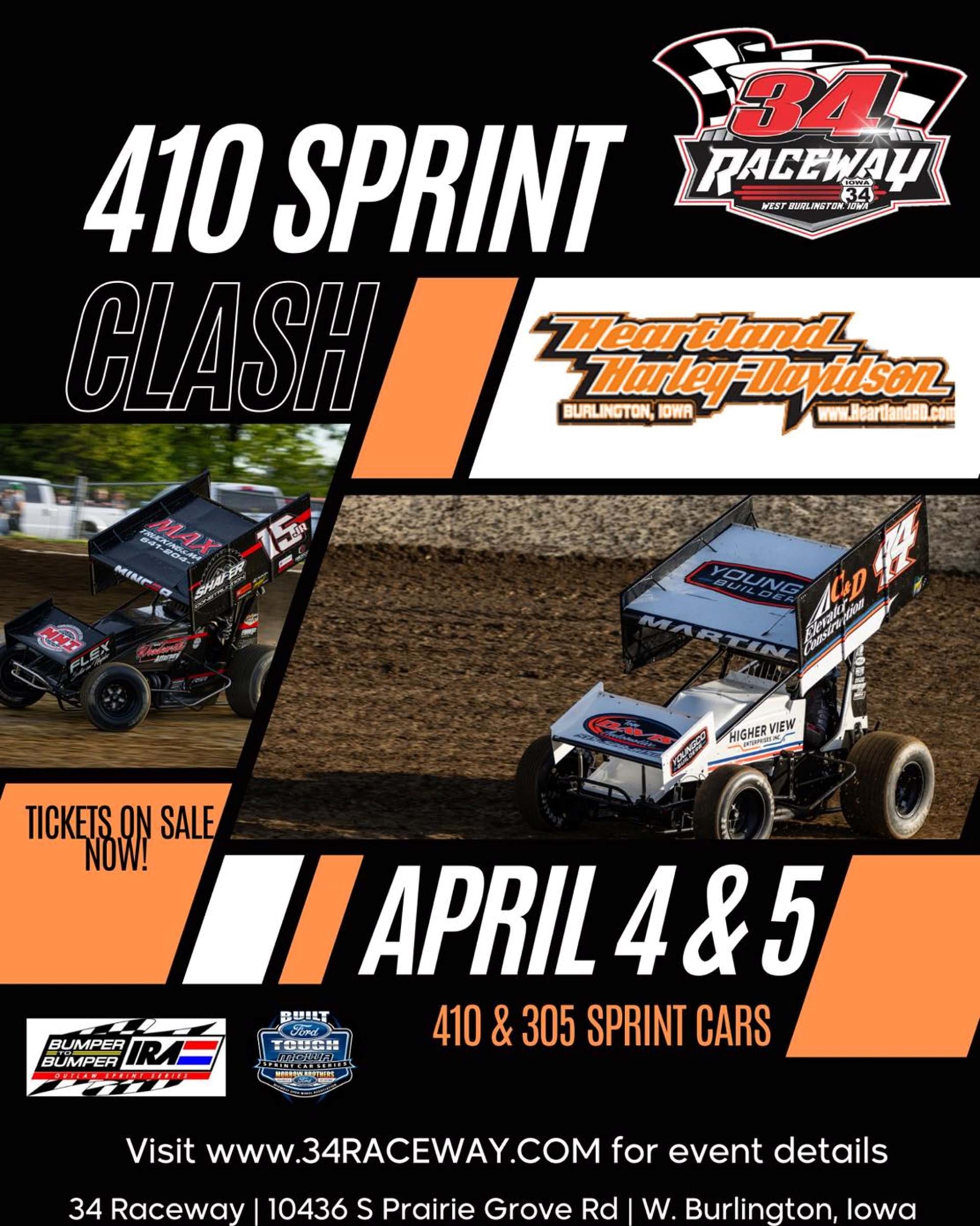 Don’t miss the Heartland Harley-Davidson 410 Clash as Bumper to Bumper IRA Sprints and MOWA go head-to-head in the first regional 410 Sprint race of 2025. Grandstand admission is $25 for adults, $20 for seniors and students; kids age 10 and under admitted free with a paying adult.