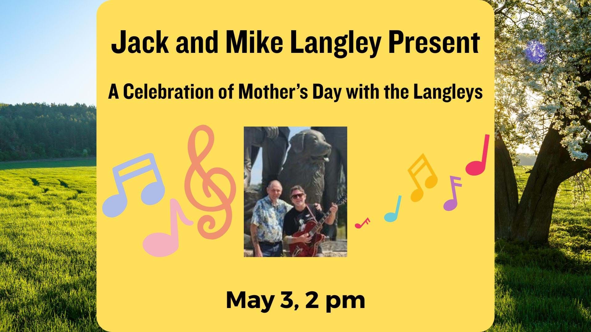 Sunday, May 3 at 2:00 p.m. at the Betty Strong Encounter Center, Jack and Mike Langley will brighten our day with a “Celebration of Mother’s Day.” playing original and evergreen favorites. Admission is free, but freewill donations encouraged. Mother’s Day always evokes a heart-warming presentation from this father and son duo. Mother's Day is a celebration honoring the mother of the family or individual, as well as motherhood, maternal bonds, and the influence of mothers in society. It is celebrated on different days in many parts of the world and most commonly in the months of March or May. Mike Langley is a singer-songwriter and 2012 Iowa Rock ’n’ Roll Music Association (IRRMA) Hall of Fame inductee. He has been known to teach basic guitar through Western Iowa Tech’s Lifelong Learning program. The Langleys have performed together onstage for more than 40 years, from Sioux City to Nashville, Tennessee, to Vienna, Austria and back.