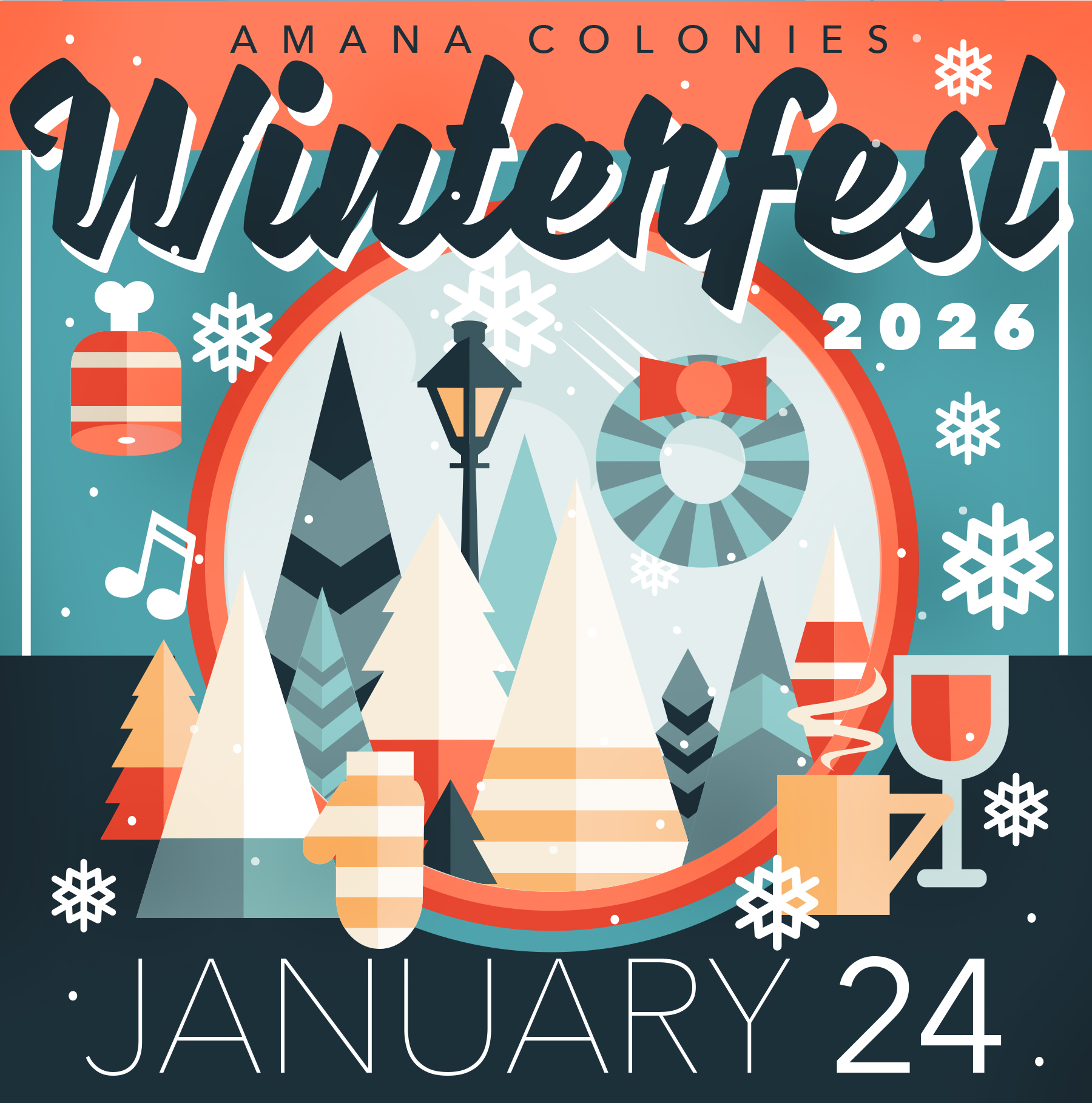 A full day of winter fun, games, music, food, and shopping in Amana, Iowa. Winter in Iowa comes alive in the Amana Colonies on Saturday, January 24, 2026, as the community hosts the 22nd Annual Amana Colonies Winterfest—a beloved annual celebration filled with outdoor games, live music, family-friendly activities, local flavors, and seasonal cheer throughout the villages of Amana.