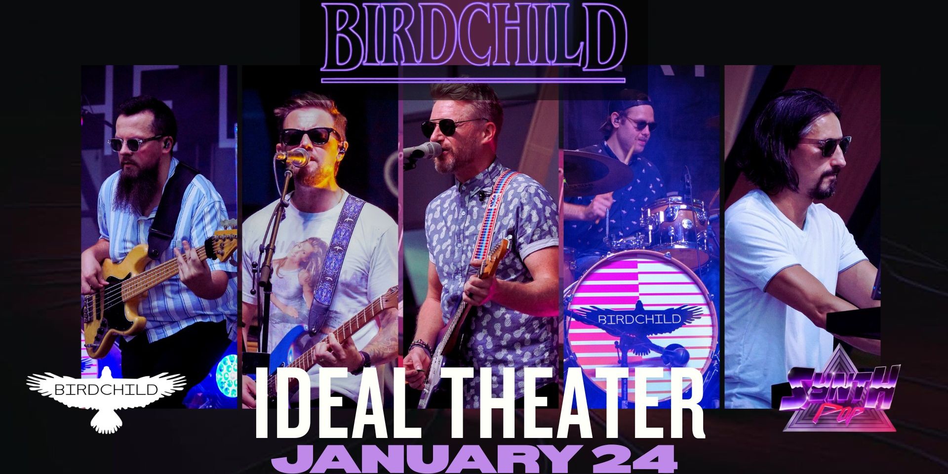 Where Top 40 meets atmosphere. Birdchild is what happens when modern pop gets treated like sacred text and then rebuilt with glowing keys, lush textures, and impeccable taste. This rapid-rising cover band isn’t interested in simple recitation. They venerate the songs, honoring their emotional core while reshaping them into something immersive, elevated, and undeniably cool. At the heart of Birdchild’s sound is a rich synthwave pulse. Today’s top hits shimmer with neon warmth, while familiar melodies are stretched, reframed, and given space to breathe. A chart-topping pop anthem becomes something expansive. An ‘80s classic finds new relevance without losing its soul. The result is a set that feels both forward-looking and warmly nostalgic, like flipping through eras without ever leaving the dance floor. Audiences can expect thoughtfully reimagined renditions of songs by Bruno Mars, Taylor Swift, The Weeknd, and Miley Cyrus, alongside lovingly crafted interpretations of timeless artists like Tears for Fears, Prince, and Fleetwood Mac. Each song is chosen with intention, woven together into a set that flows as a complete journey rather than a string of hits. Visually striking and sonically rich, a Birdchild show feels less like a cover band performance and more like a live experience designed to move you. Whether you’re singing along, swaying in place, or fully locked into the atmosphere, this is music meant to be felt as much as heard. SHOW 8PM Doors 7PM