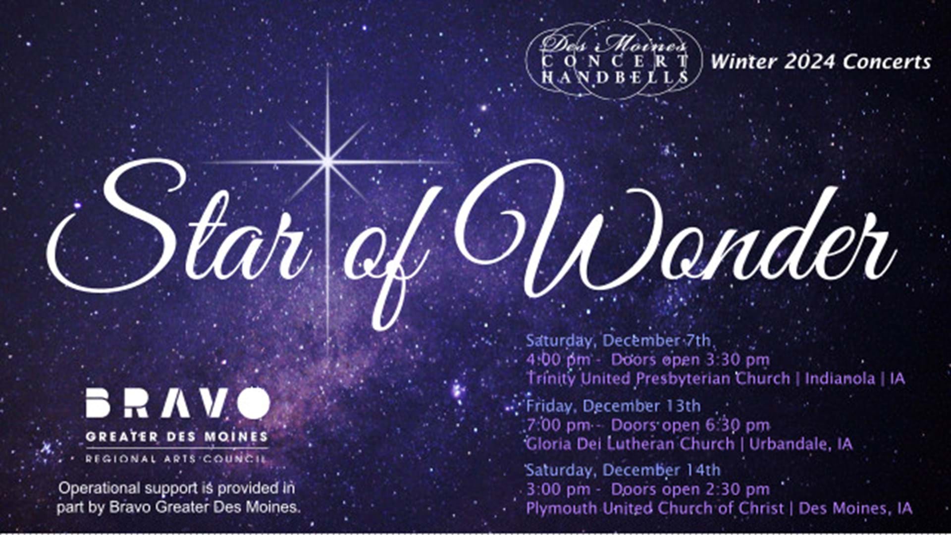 Come join us for one or all three of our Des Moines Concert Handbells Winter Concert. We will have a variety of music and can't wait for you to join us. Bring your family and friends! We have concerts in Indianola, Des Moines and Urbandale.