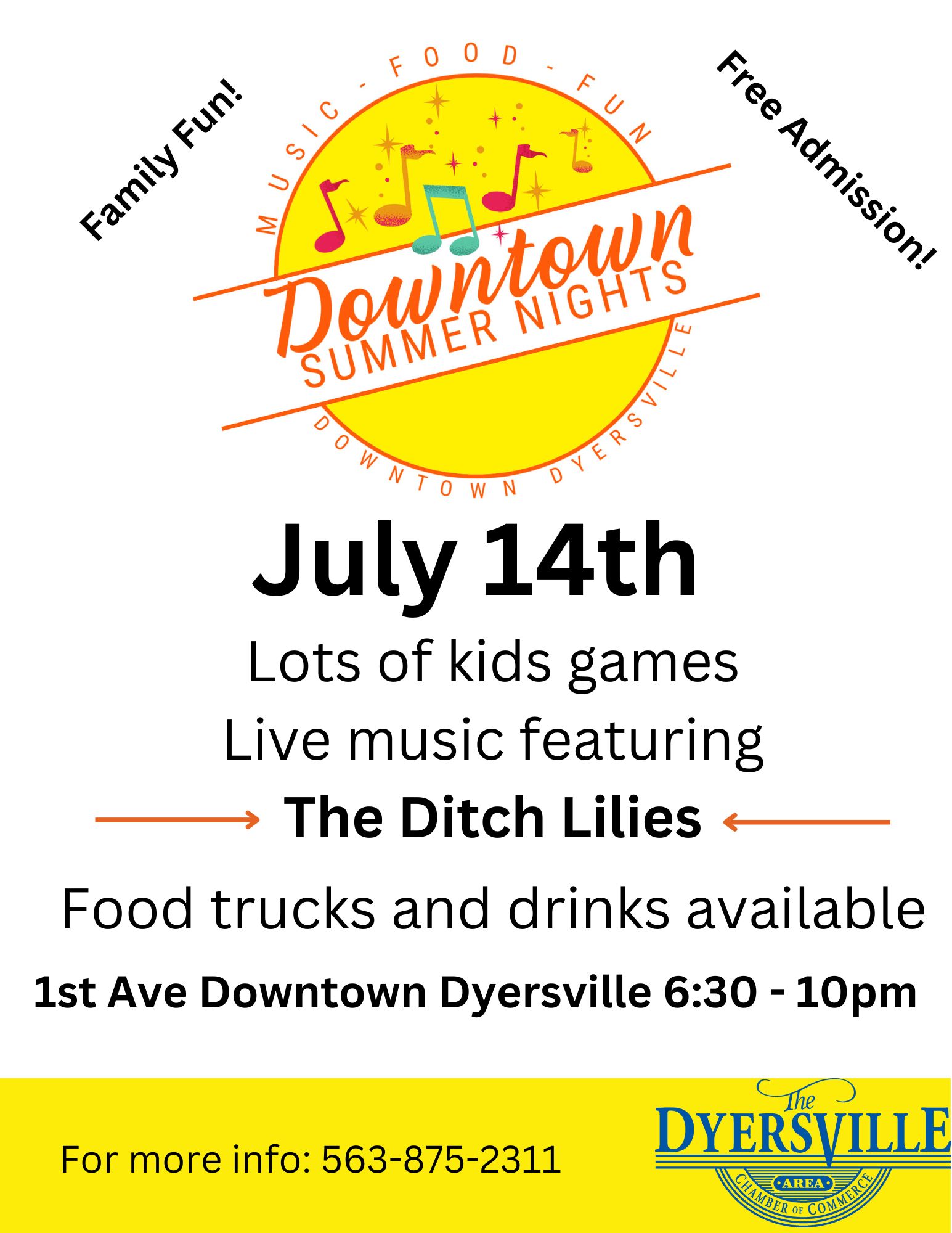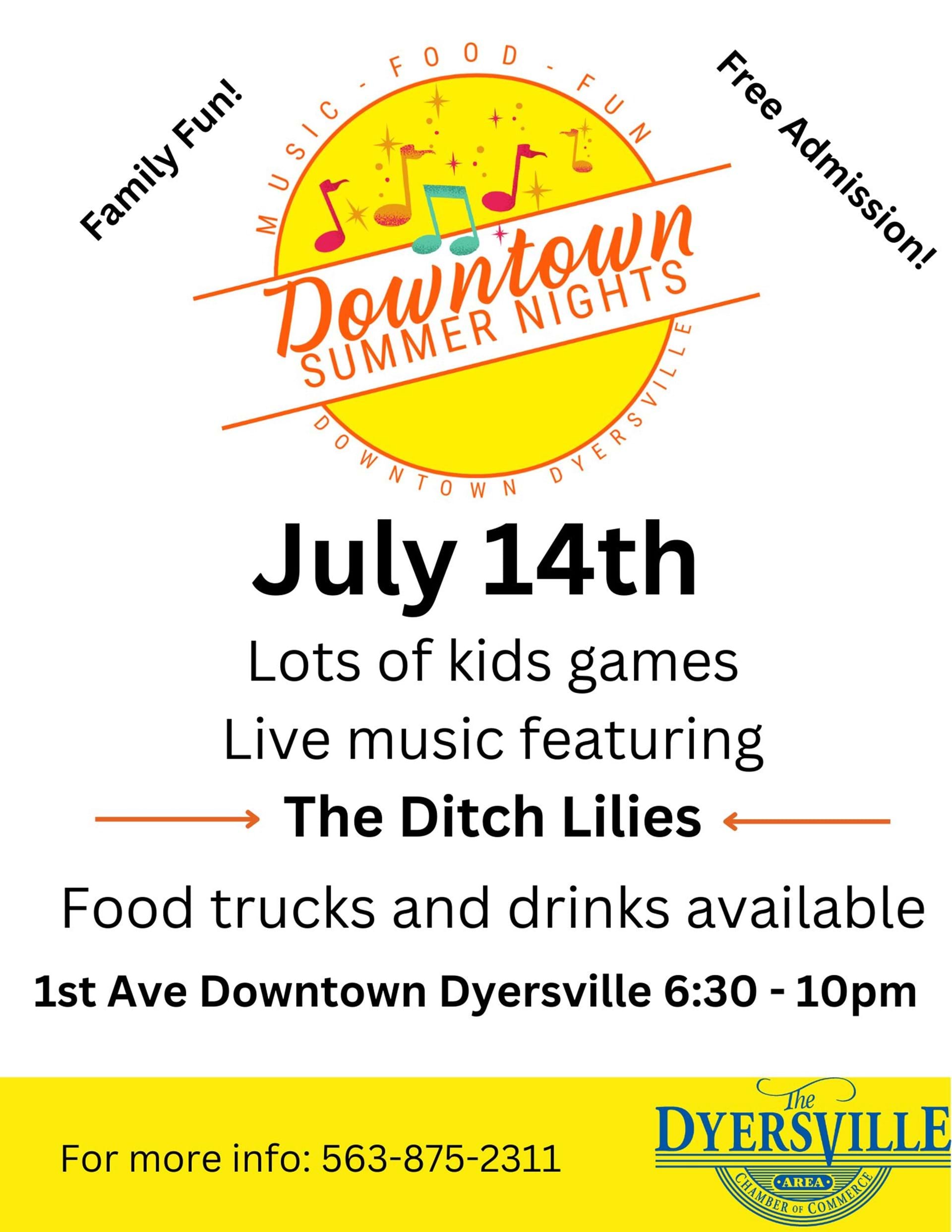Bring the family down to Downtown Summer Nights! Straight from Cascade, the DITCH LILIES will be playing in the City Square! More kids games and plenty of cold beverages. Thanks to our generous sponsor support, admission is free!