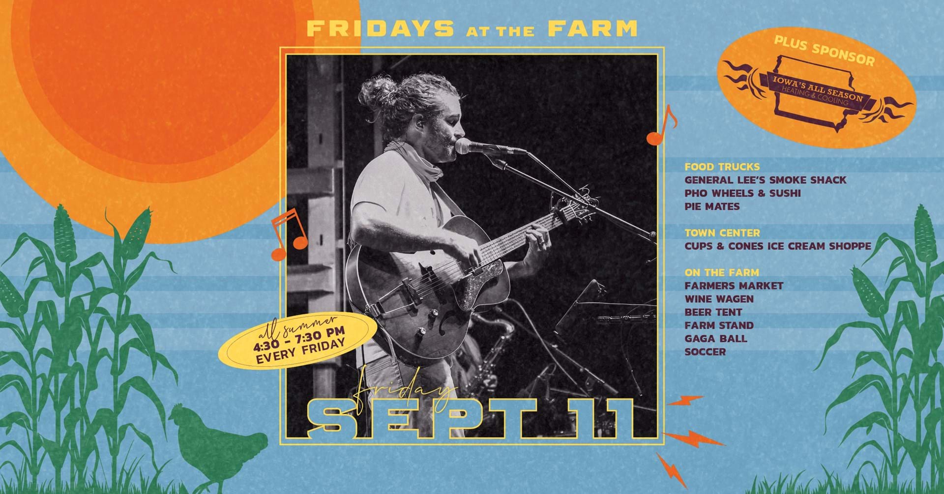 Enjoy live music on The Farmhouse porch, browse our local vendor market, and grab a bite from some of your favorite food trucks. Bring a lawn chair or blanket, sip something refreshing from the Wine Wagen or beer tent, and settle in for a relaxed, feel-good Friday evening under the open sky. Plus, there’s fun for the kids, too, with activities like soccer and gaga ball to keep them moving while you kick back and enjoy the night. Friday, September 11 | 4:30 – 7:30 PM Live Music: Damon Dotson Food Trucks: General Lee's Smoke Shack, Pho Wheels & Sushi, Pie Mates Free, family-friendly, and full of summer vibes—see you at the Farm!