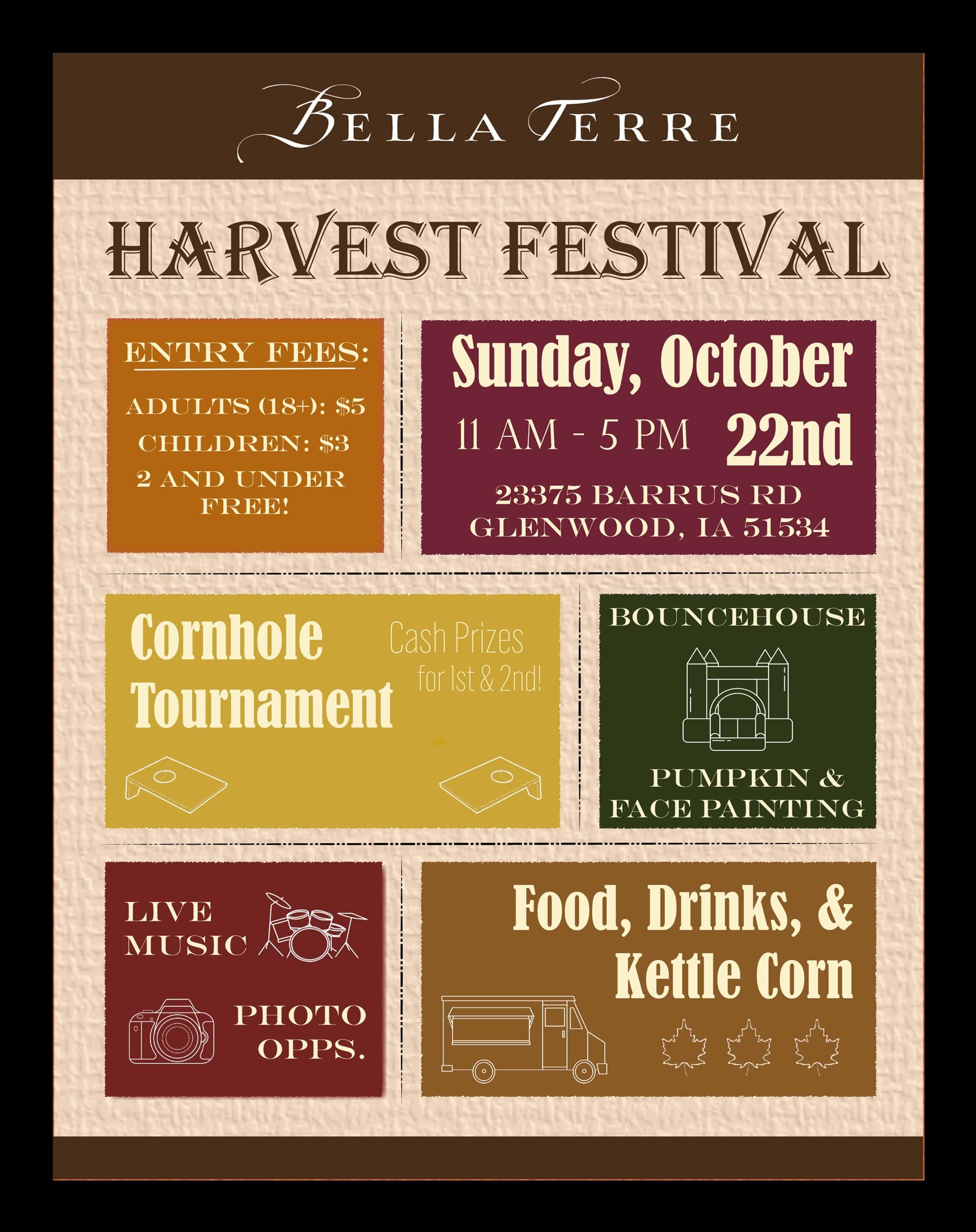 There will be Live Music, Face painting, Pumpkin Painting, Food, Drinks, Kettle Corn, Candy, Photo ops, Bounce-house, and more! We will be having a cornhole tournament with cash prizes for 1st & 2nd place! The entry fee will be $30 per team which will also cover both team members' admission fees!
