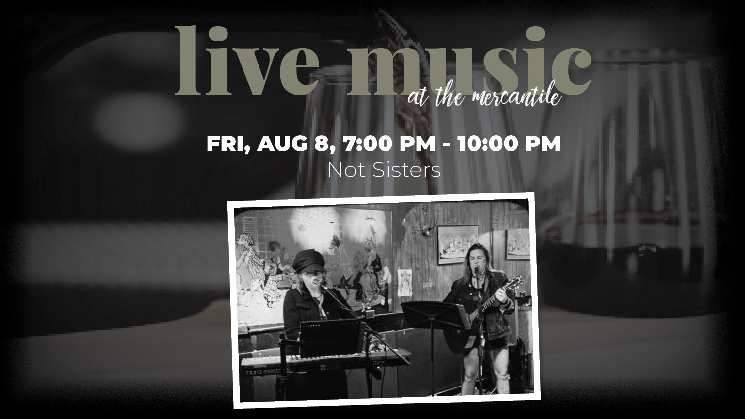 Kick off your weekend with live music at Middlebrook Mercantile Friday, August 8 from 7:00 p.m. – 10:00 p.m. Enjoy wine, snacks, and great company as Not Sisters brings their signature sound to the stage. Come for the music, stay for the atmosphere!