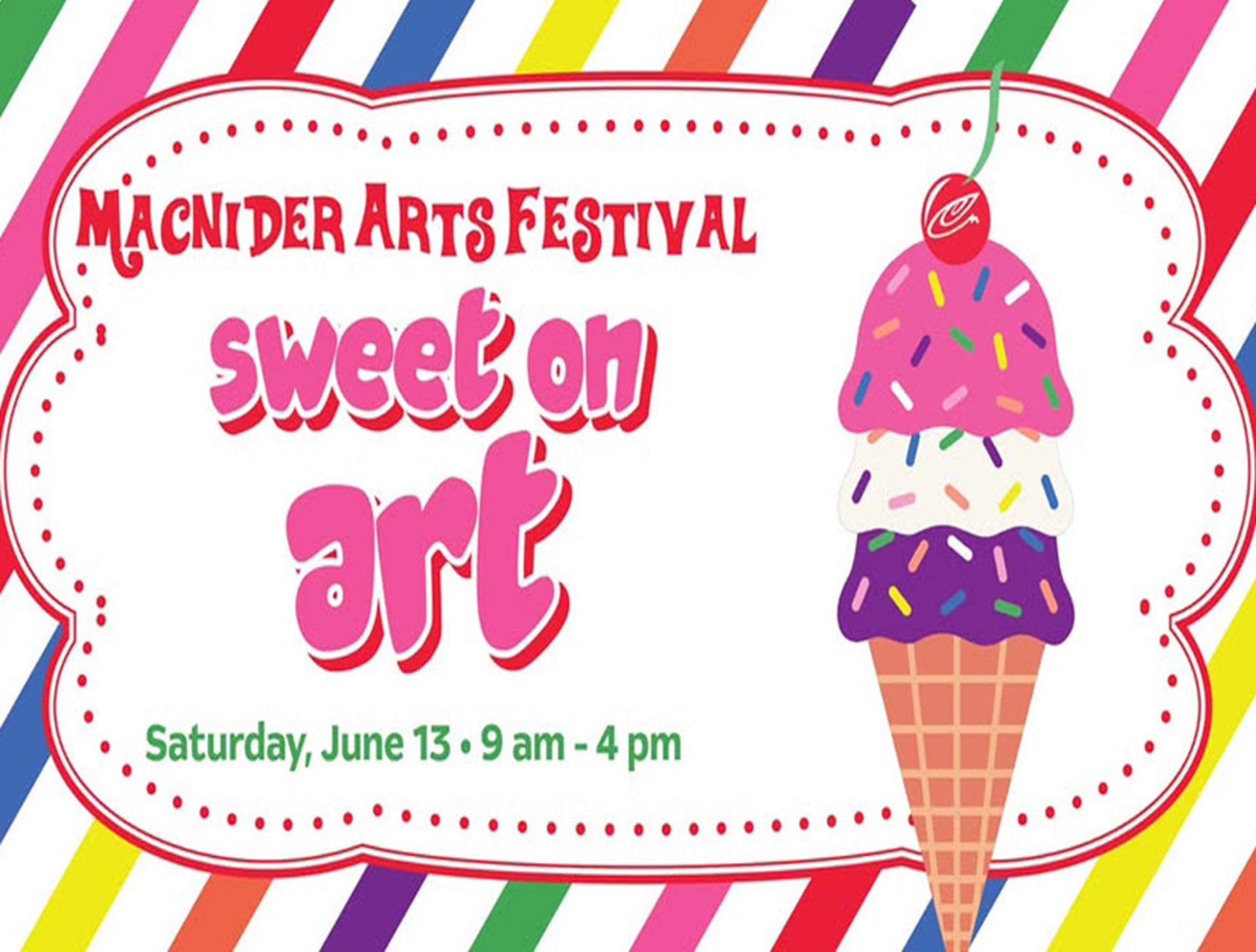 The Charles H. MacNider Art Museum is pleased to announde thhe theme of the annual MacNider Arts Festival and Outdoor Market. This year’s “Sweet on Art” tasty treats theme will encourage children to use their imaginations while making sweet-looking projects on Saturday – June 13th from 9 a.m. to 4 p.m. Arts activities for children, an Art Market full of talented artists, and live music will all be part of the fun. All events are located outside the Museum and adjacent Mason City Public Library at 303 2nd Street SE in Mason City. Admission is free