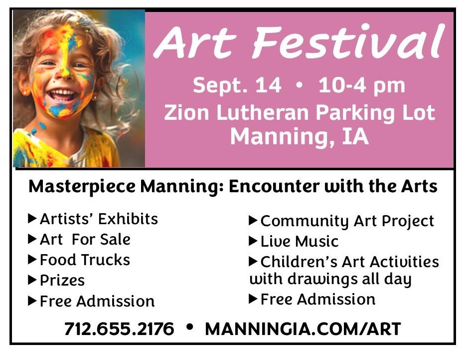 Join in for an art show, live music, community mural painting, food trucks, kids activities, and more! Find out more or register to be an artist at: www.manningia.com/art