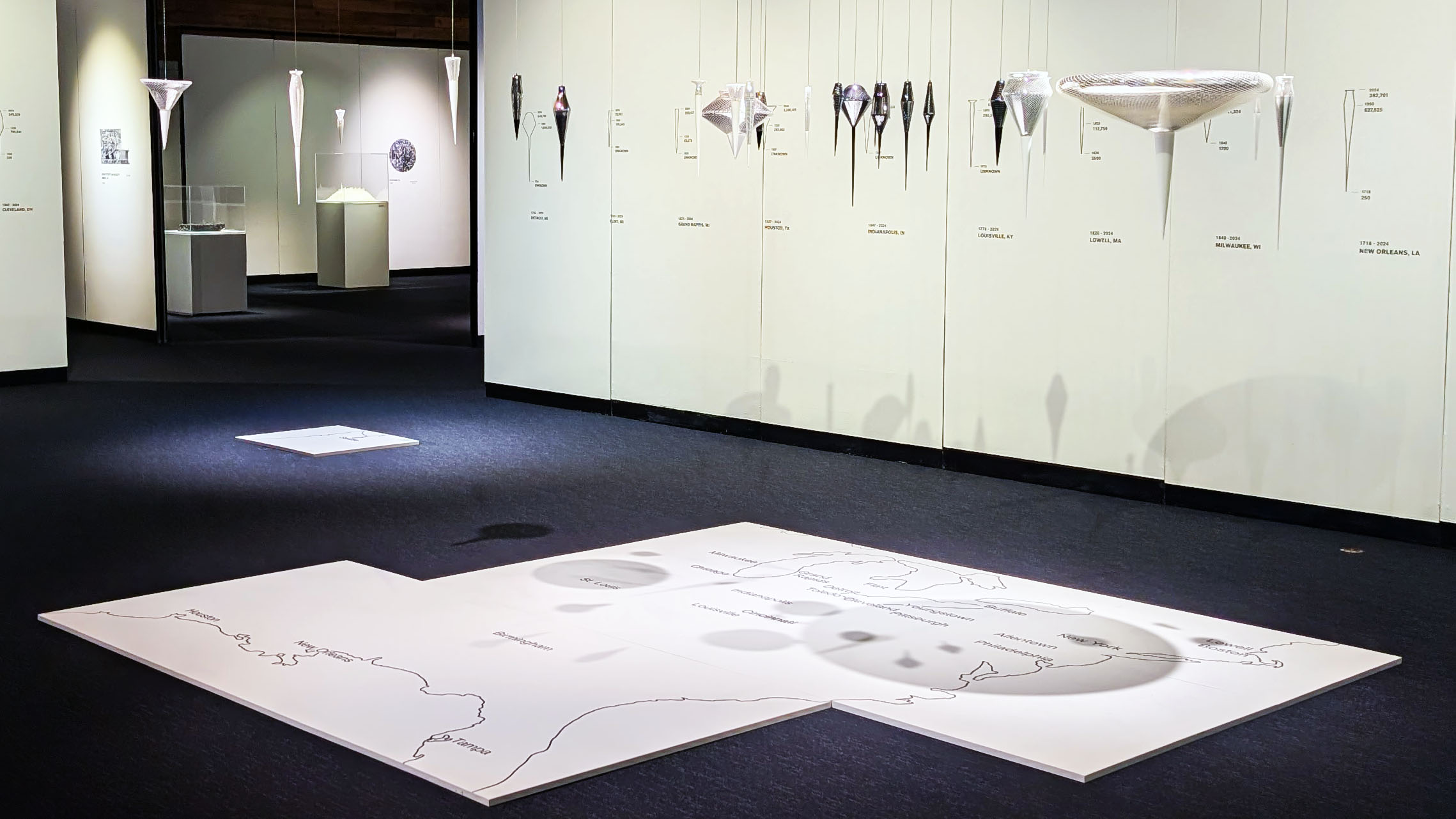 Artist Norwood Viviano combines technology, data collection, and art to visually depict change. From shifts in population and industry to sea level rise, he synthesizes complex data into sculptures that bring light to the effect of those changes on communities over time. Through blown glass paired with vinyl images and cast glass and metal sculptures, Viviano engages the extensive research of historians, urban planners, demographers, and climate scientists to create works that merge past and future. Mapping Infrastructure / Mapping Agriculture presents sculptures and visual explorations examining manufacturing history in U.S. cities and projected land loss due to sea level rise. On view is the "Recast" series, combining imagery from manufacturing's past with current urban architecture, and "Cities Underwater," which visualizes dramatic loss of land predicted to occur in the next 500 years in coastal areas. About Norwood Viviano Norwood Viviano is an associate professor and sculpture program coordinator at Grand Valley State University. His work has been exhibited at the Venice Biennale, Smithsonian American Art Museum's Renwick Gallery, and is held in major museum collections including the Corning Museum of Glass and Museum of Fine Arts Houston.