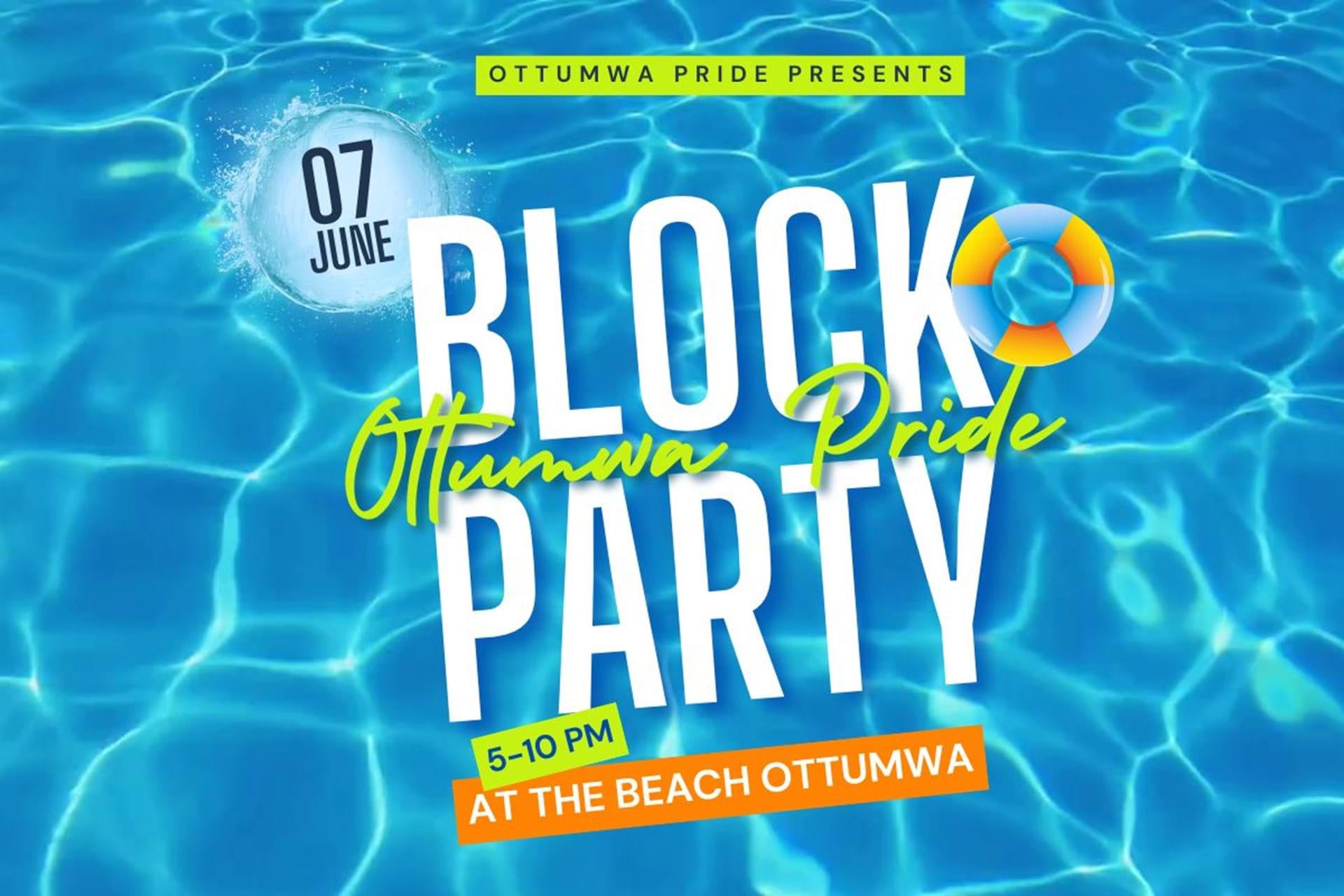 The Ottumwa Pride Block Party is celebrating its 5th year in 2025, and this year, we're switching things up! Join us at The Beach Ottumwa on June 7th for an unforgettable afternoon filled with fun in the sun, live entertainment, and a vibrant celebration of love, inclusivity and pride. Come connect with friends, soak in the positive energy and make some lasting memories!