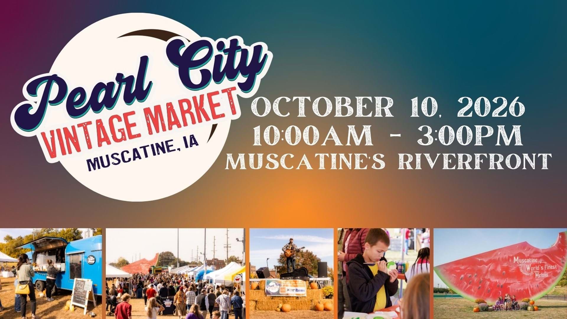 Join us on Saturday, October 10th from 10 AM - 3 PM on Muscatine Iowa's riverfront! Shop one-of-a-kind handmade, re-purposed & curated finds from a variety of vendors! Enjoy live music 10 AM - 12:30 PM - Joseph Colon 12:45 PM - 3 PM - South 61 Grab a bite from food trucks Sip on delicious fall-themed drinks Photo-op by the World's Largest Watermelon Sculpture. Fun for all ages! It’s FREE, family-friendly, and the perfect way to spend a crisp fall Saturday! Vendor applications are open now! https://forms.gle/xVr865naaD9mHj9t6