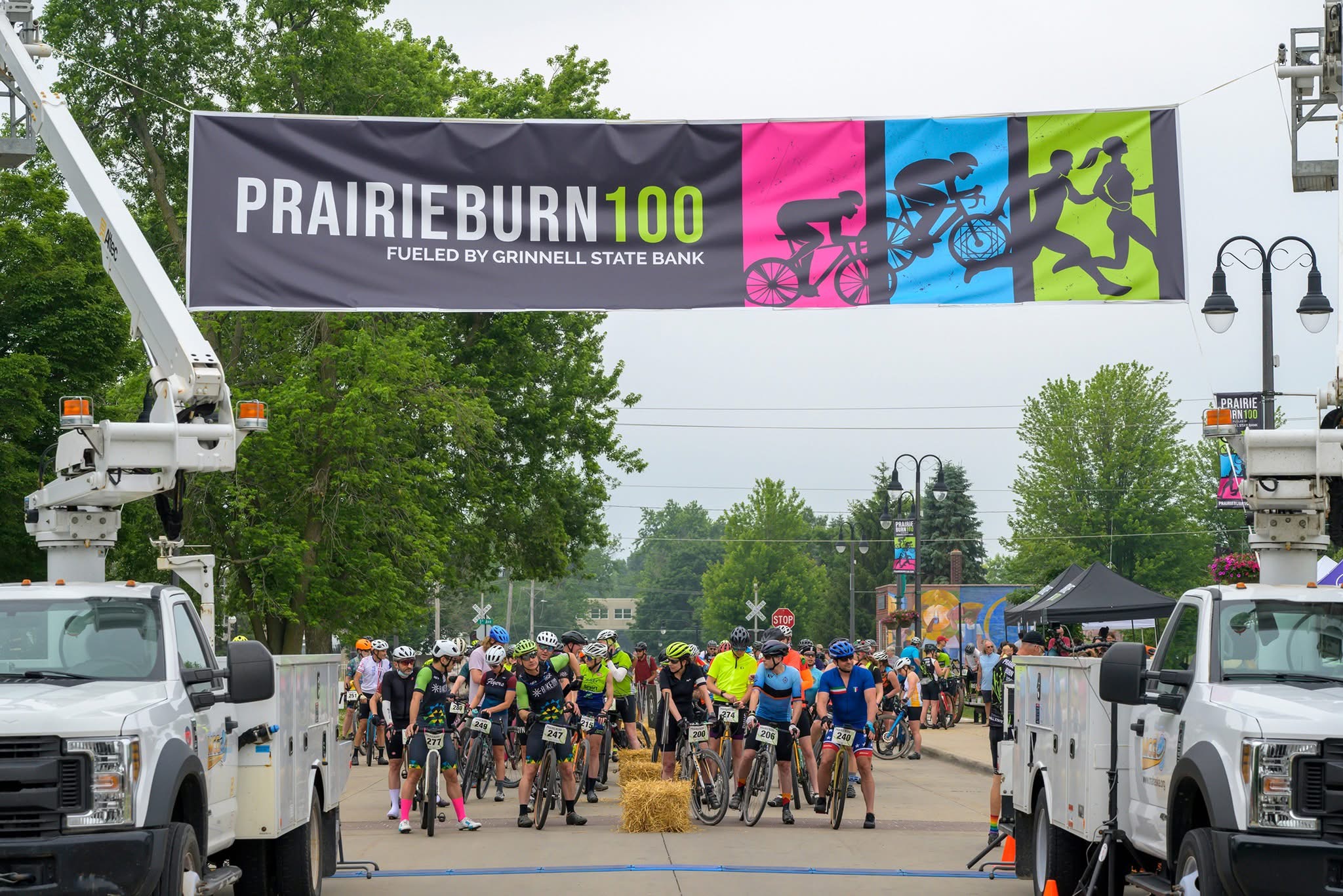 Prairie Burn invites cyclists and runners to experience Grinnell and the surrounding countryside through a day of outdoor adventure and celebration. Cyclists can choose from 100K, 50K, or 25K gravel routes, riding some of the best gravel and B-roads in the Midwest. The 100K also offers a team option for groups of three riding together. Runners can participate in a 5K or 3K fun run that winds through the Grinnell community, making it an accessible option for all ages and experience levels. All routes finish in Grinnell's Central Park, where participants and spectators can enjoy food, drinks, and live music throughout the day.