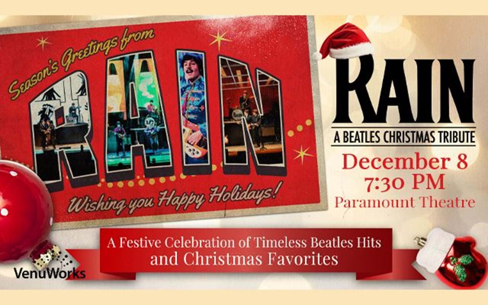 Longer together than the Beatles themselves, RAIN has mastered every detail of the band’s iconic sound and style. Now, for the first time ever, they’re wrapping it all in holiday cheer for a nostalgic, feel-good event that’s sure to become a new seasonal tradition.