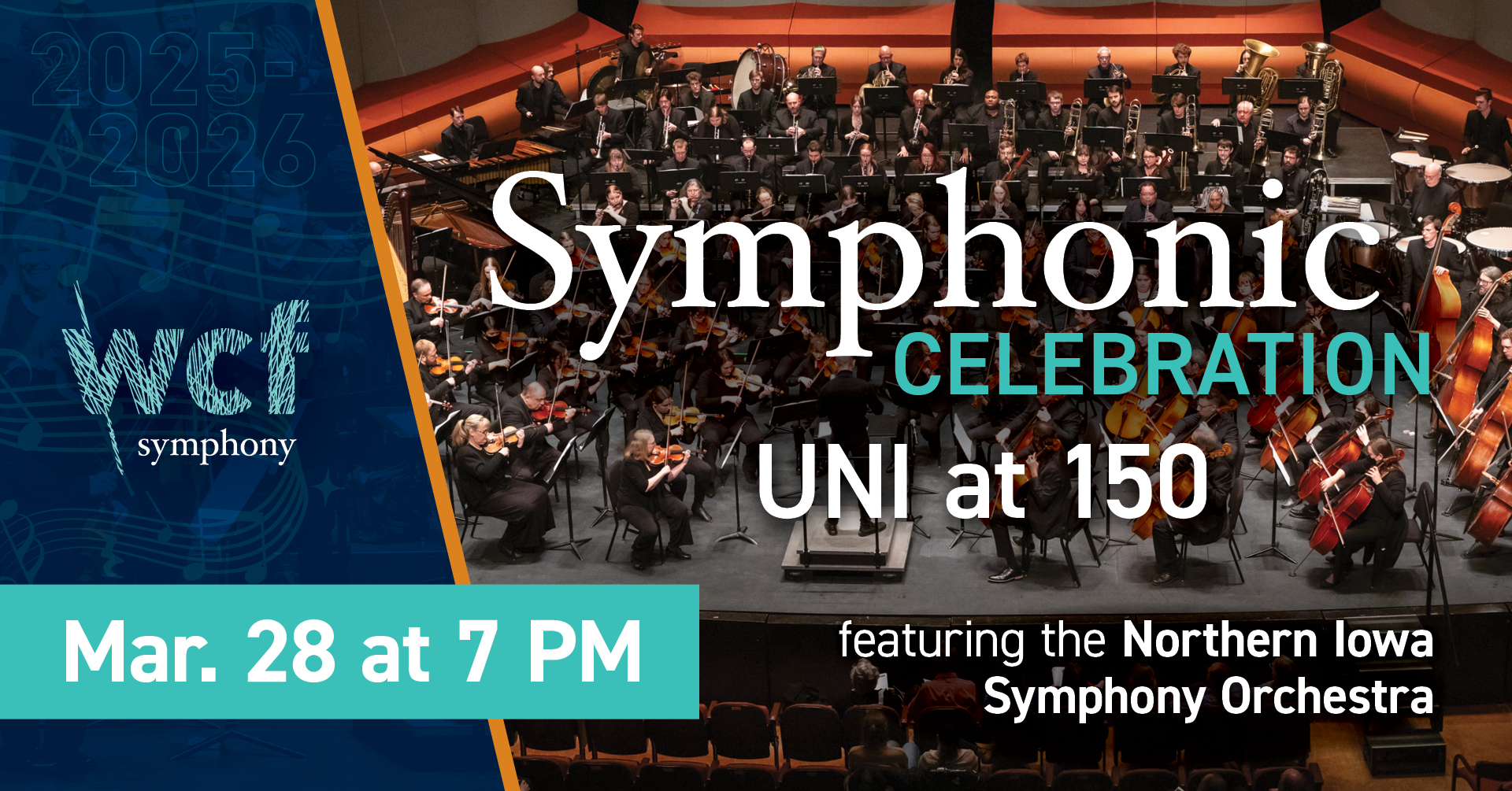 Celebrate 150 years of the University of Northern Iowa with an evening that honors the power of partnership, artistry, and education. The wcfsymphony starts with a bold new Concerto for Jazz Trombone by UNI faculty member and composer Mike Conrad, featuring UNI professor and wcfsymphony principal trombonist Anthony Williams. Then, wcfsymphony shares the stage with the Northern Iowa Symphony Orchestra for a side-by-side performance of Tchaikovsky’s Symphony No. 4—a passionate and emotionally-charged masterpiece that brings the program to a dramatic close.