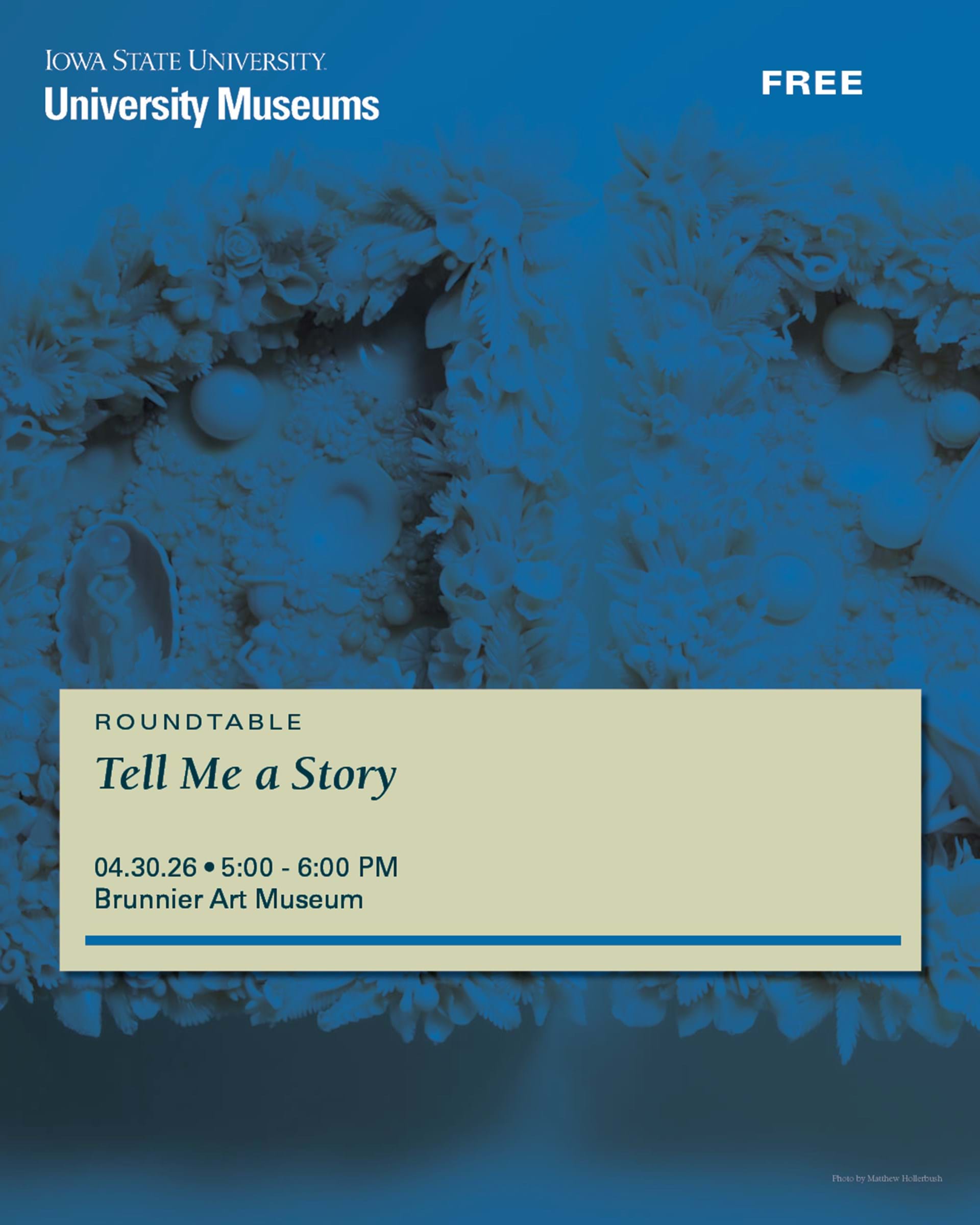 Join ISU faculty and University Museums in a conversational roundtable to learn about the impact of storytelling on teaching and research. Participants will also discuss personal connections to the works of art in the exhibition, Tell Me a Story.