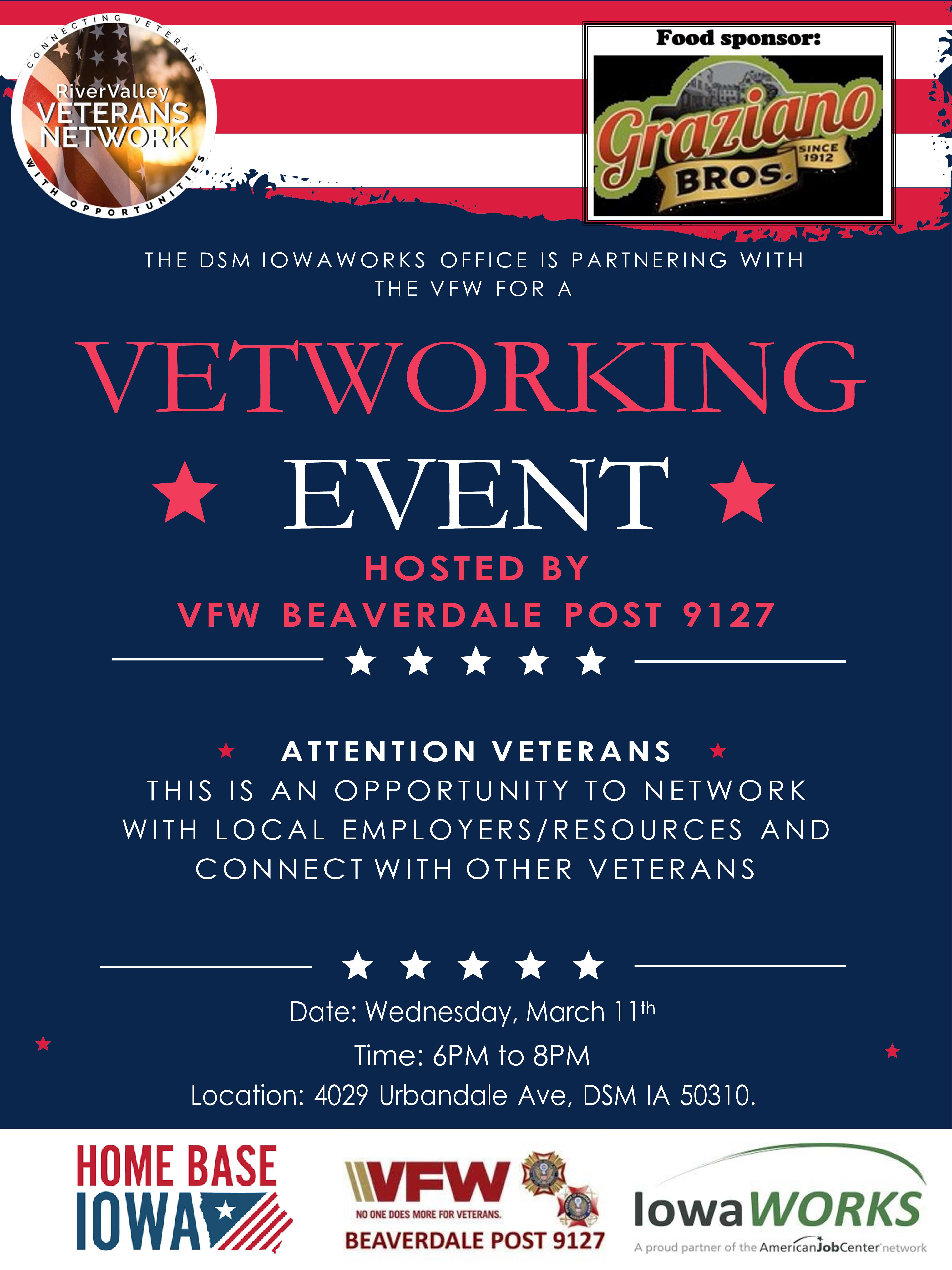 Excited to share this upcoming River Valley Veterans Network event! If you’re a Veteran, currently serving Guard or Reserve Member, or part of a military family, this is a great chance to connect with others, meet supportive employers, and be part of a community that truly understands your journey. Join us for meaningful conversations, new opportunities, and a welcoming space built for Iowa’s military community