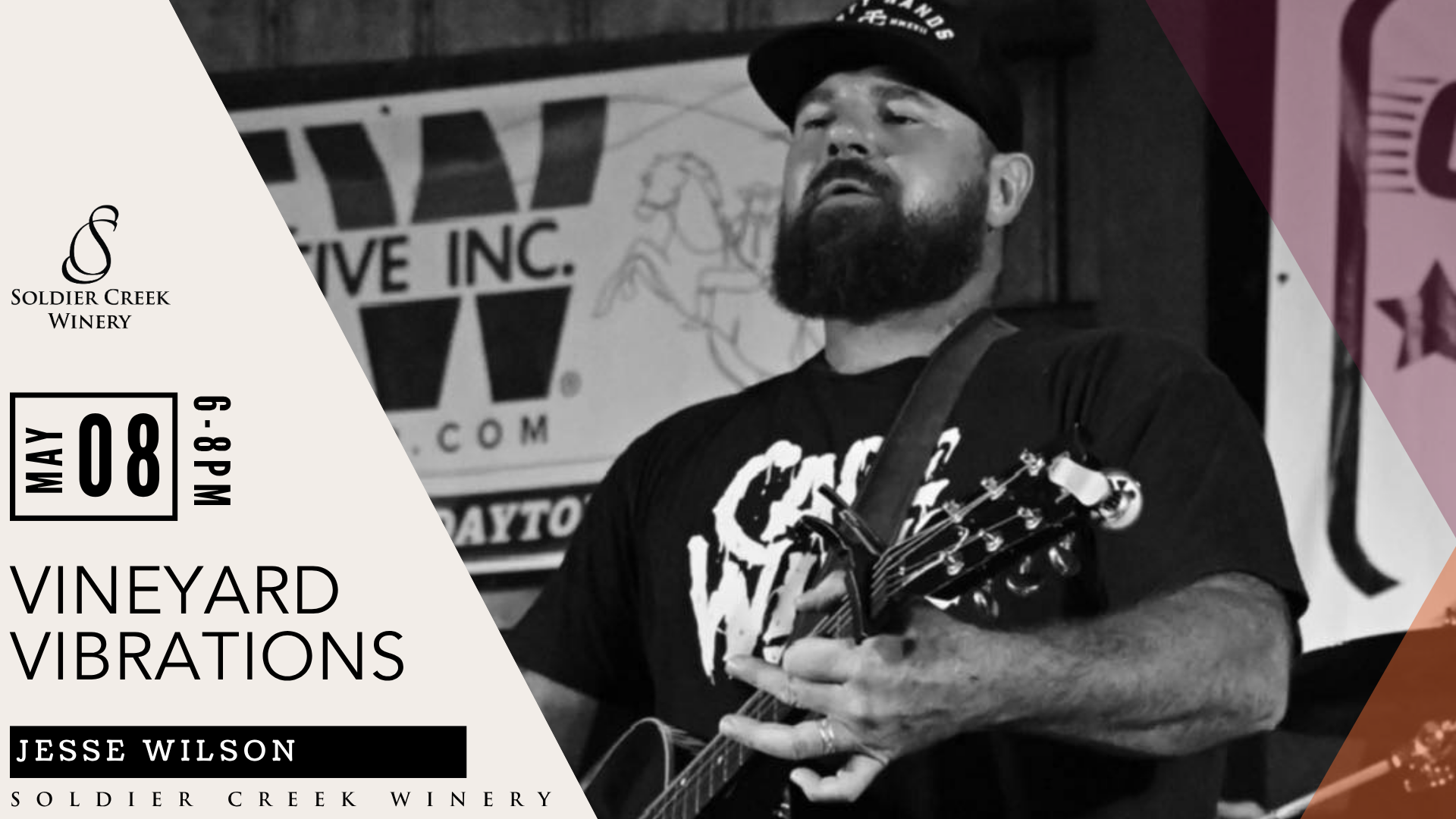 Local talent. Country soul. A night worth showing up for. Jesse Wilson brings his Country Music sound to Soldier Creek Winery on May 8 from 6 to 8 PM — mixing covers you love with original songs that prove he is the real deal. Jesse's warm, genuine stage presence makes every performance feel like a night out with a friend. Come support local, sip something great, and enjoy every song. May 8 | 6–8 PMSoldier Creek Winery Share with your country music person and make it a night. Soldier Creek Winery: where great wine meets memorable times.