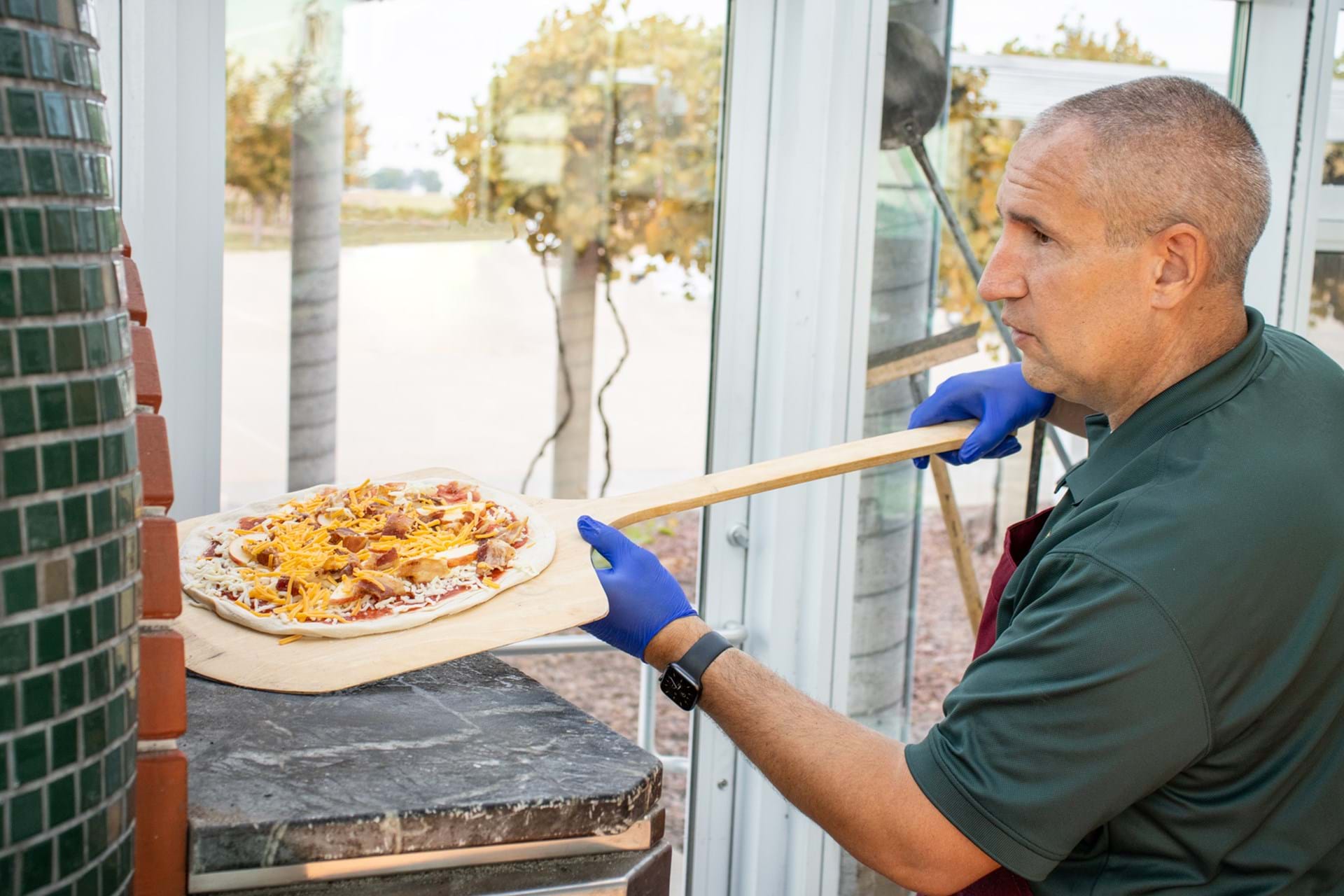 Enjoy a glass of Tassel Ridge wine ($6–$12) with your favorite individual Wood Fired Oven Pizza ($15). Choose an Apple Bacon Cheddar Pizza; a Barbecue Chicken Pizza with Barbecue Chicken, Red Onions, Shredded Cheese, and Barbecue Sauce (no Tomato Sauce); a Margherita Pizza with Fresh Basil and Fresh Mozzarella; a Pepperoni, Black Olive, and Shredded Mozzarella Pizza; or select any four toppings from the Toppings of the Day (Apple, Bacon, Black Olives, Barbecue Chicken, Barbecue Sauce, Fresh Basil, Fresh Mozzarella, Pepperoni, Red Onions, Shredded Mozzarella, Spinach) to Create Your Own Pizza ($17) and pair with an Italian Side Salad with Romaine, Grape Tomatoes, Black Olives, Garbanzo Beans, Banana Peppers, and Italian Dressing ($5). End your evening on a sweet note with a Chocolate Marshmallow Delight Pizza with Dark Chocolate, Milk Chocolate, and White Chocolate Chips and Marshmallows ($10). Seating is limited.