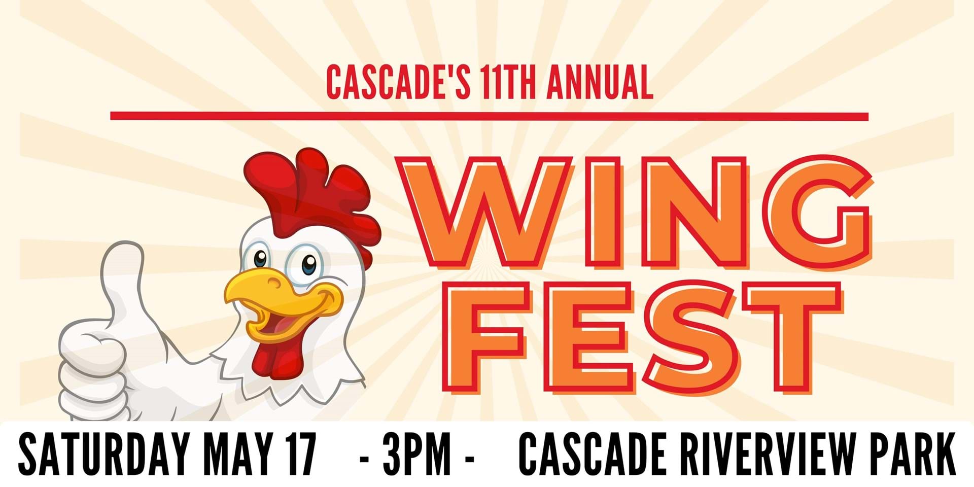 Join us for the 11th Annual Wing Fest! - Free Admission - Wing Samples $10 for 8 Wings - Cold Beer Available - Bring Your Own Lawn Chairs - NO Carry-Ins