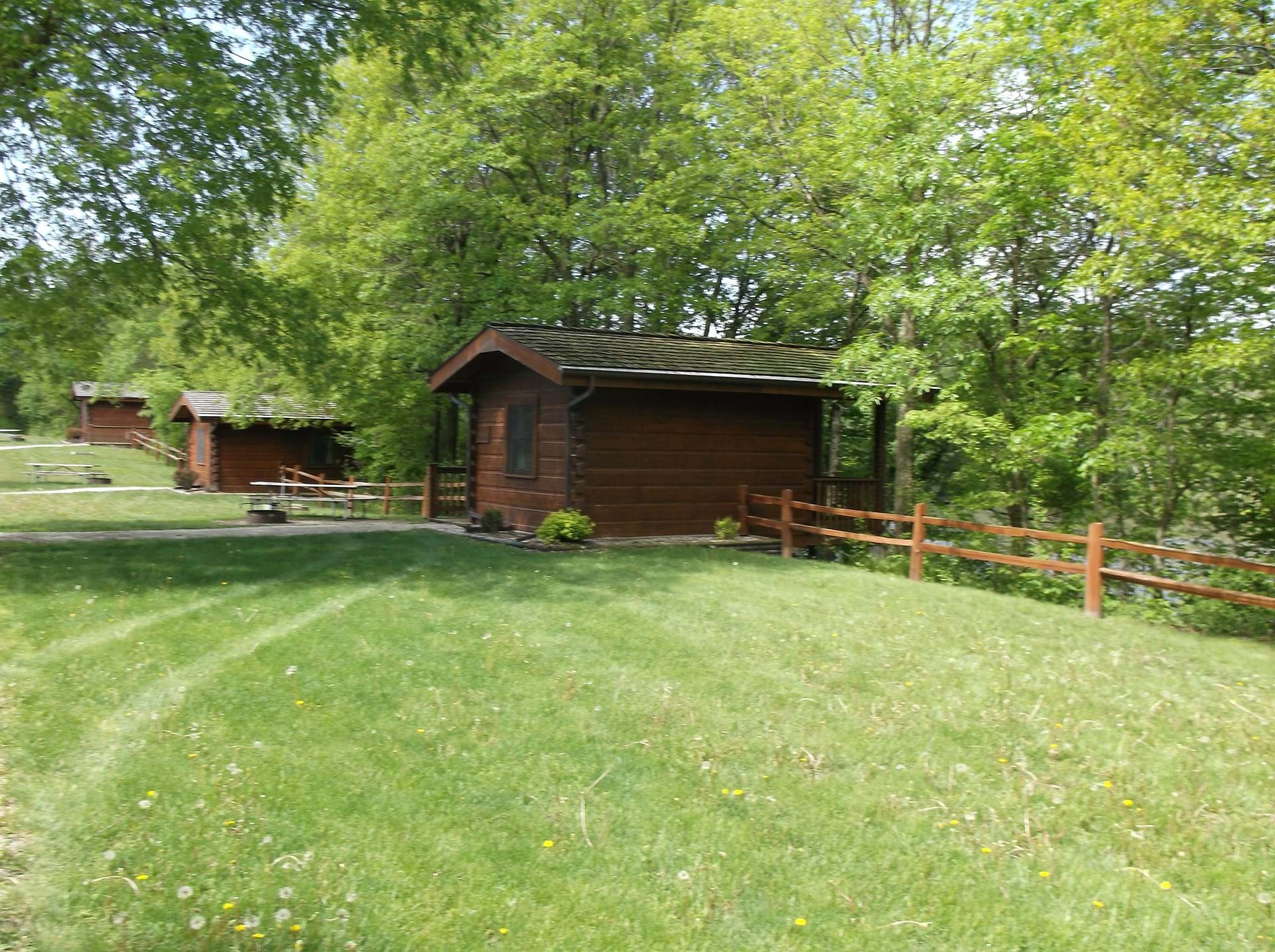 Four one-room cabins along the Boone River sleep up to four people each, with heat/AC, small refrigerator, microwave, table, sofa sleeper and bunk bends. Restrooms/shower located in the campground.