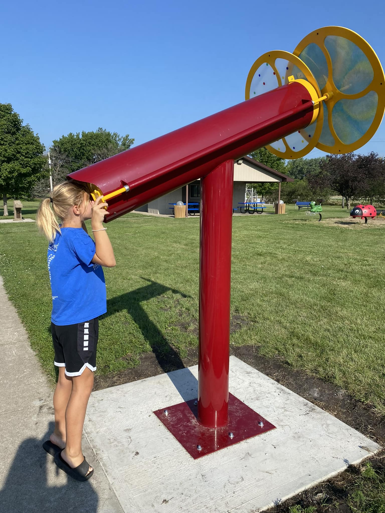 Discover the fascinating kaleidoscopes across Pocahontas County, Iowa! Known as a major tourist attraction for Pocahontas, these 11 kaleidoscopes provide a fun day trip for your family and friends. Each one as different colors to represent the history of the community and a unique design inside. The Fonda Scope is maroon with gold accents to reflect prior school colors. It is located next to Hwy 7 Café and the Fonda Swimming Pool at North Park, so a great spot for the family to enjoy a hot summer afternoon!