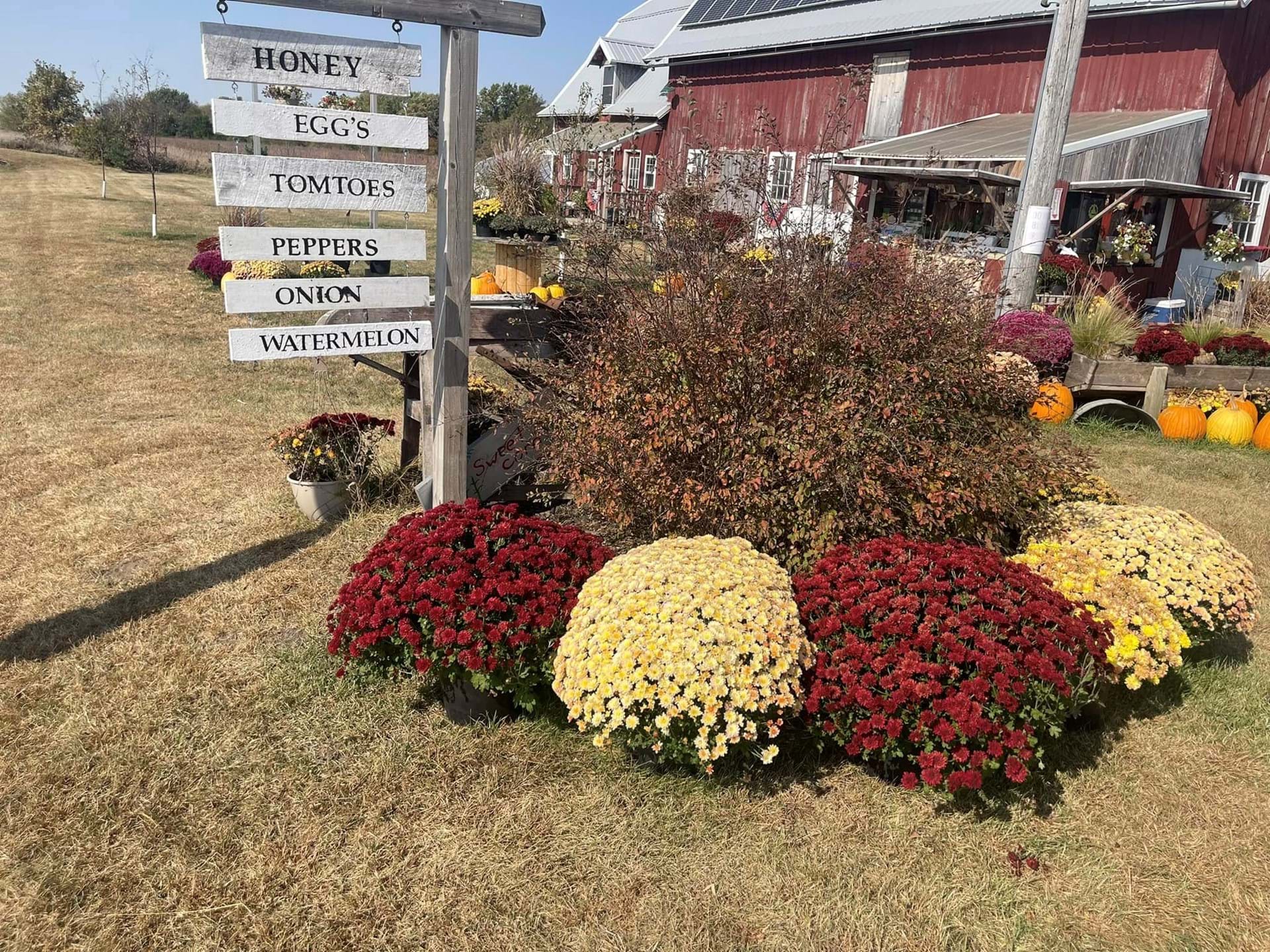 Small organic produce stand selling flowers, honey, crafts, organic homemade products and home-grown garden produce.