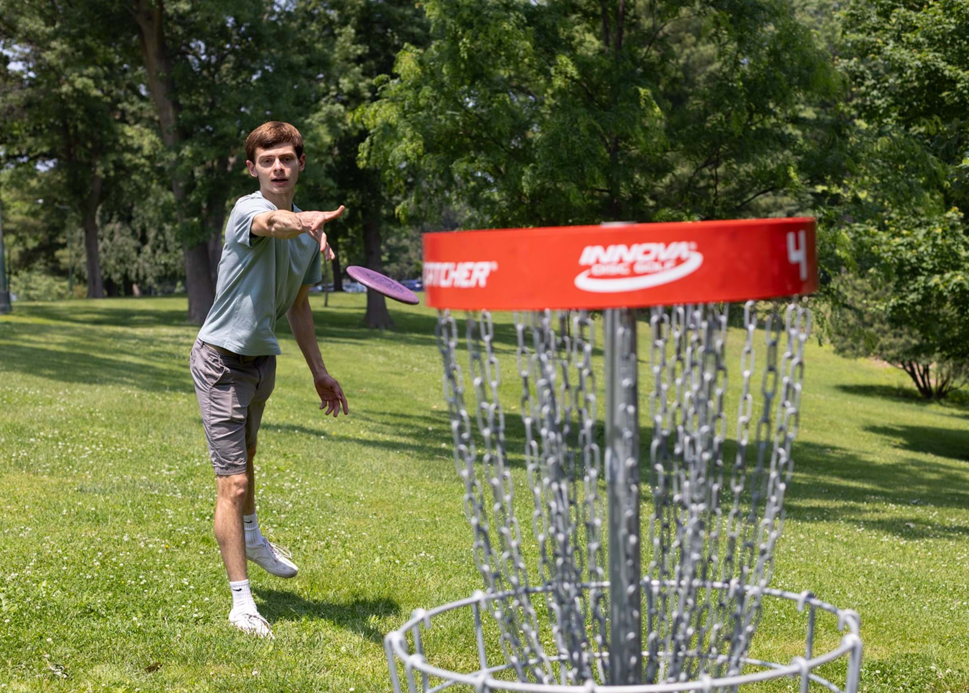 T his picturesque park is a testament to the city's rich history and serves as a beloved community gathering spot. Nestled amidst lush greenery, it offers scenic walking trails, serene picnic areas, the park's centerpiece is the iconic Maytag Bowl, an open-air amphitheater that hosts live concerts. Home of the annual "Bowlful of Blues" event. The park also includes basketball courts, an 18-hol disc golf course, trails, shelters, playground, swimming pool, tennis courts and more!