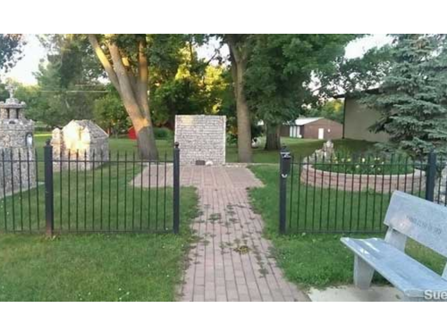 The Mini Grotto located in Harris was built behind the old post office. The individual who built it was named Bud Allen and he was the former Postmaster, who also ran a cafe in Harris at the time.
