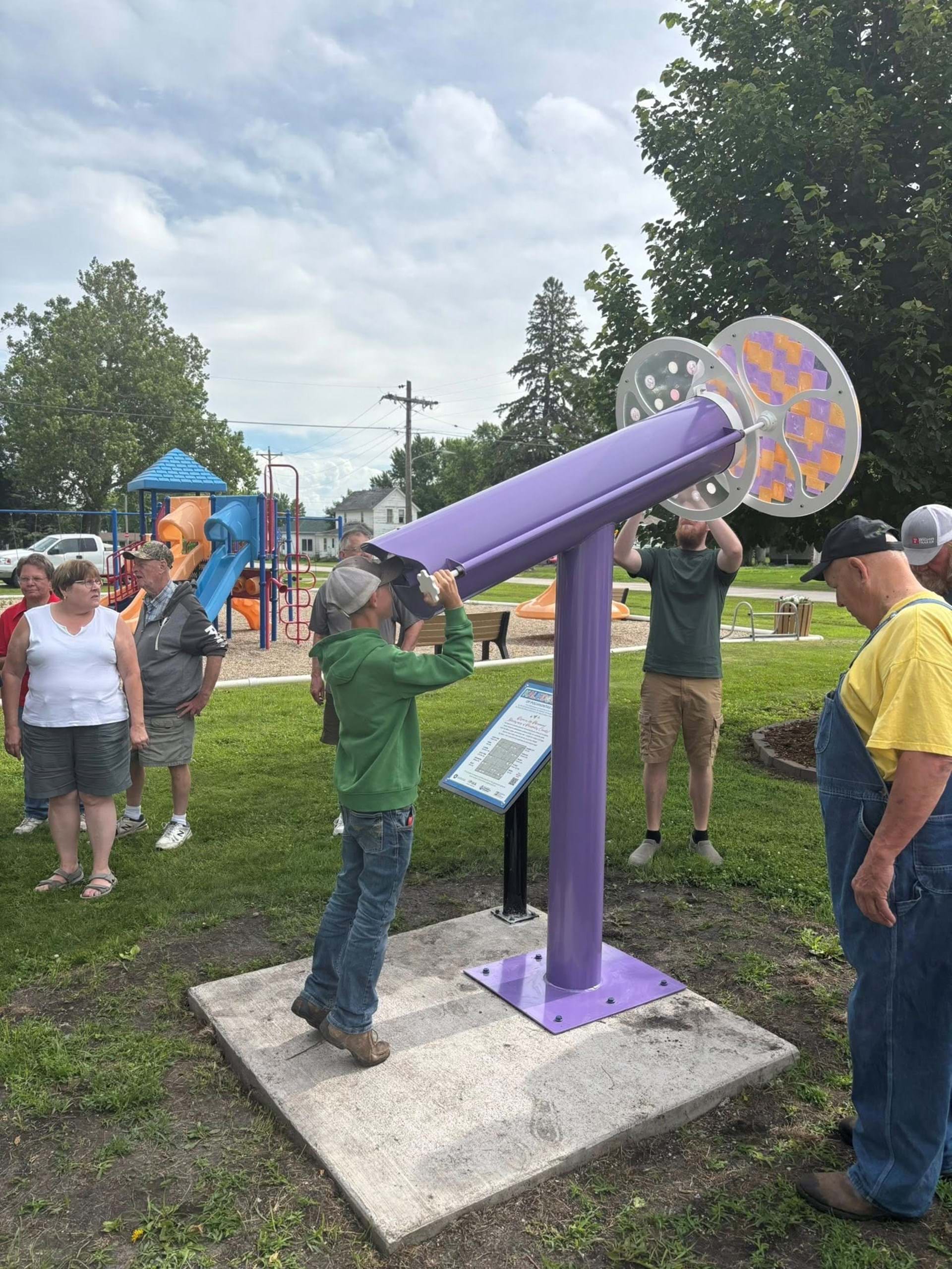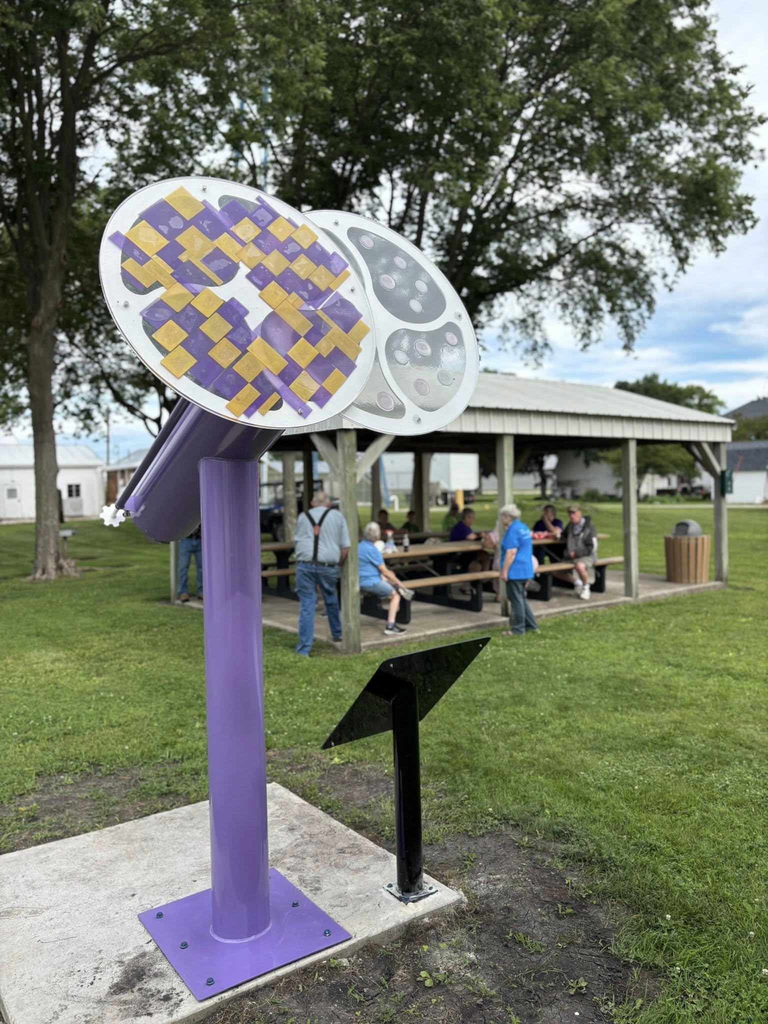 Discover the fascinating kaleidoscopes across Pocahontas County, Iowa! Known as a major tourist attraction for Pocahontas, these 11 kaleidoscopes provide a fun day trip for your family and friends. Each one as different colors to represent the history of the community and a unique design inside. The Palmer Scope is purple and white to represent the history of the Palmer Panthers and their successful basketball history. Be sure to pack a picnic to enjoy under the nearby shelter house and let the kids run around Panther Park!