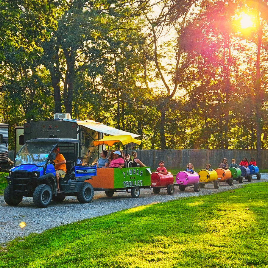Highest Rated Trailer Life Campground in Iowa! Timberline Campground, Waukee is close to all the Des Moines Metro festivals, sporting events, brew pubs and must-visit restaurants. It's like a slice of relaxation in the midst of all Iowa has to showcase. And, we're home to Myrtle the Turtle - winner of Waukee's Best Office Mascot! For those who want to slow it down..... stay close to camp with a dip in the pool or toss a line out on the catch and release pond. Our camp store is newly expanded with unique wanderlust gifts and essentials; check out our Myrtle memorabilia and artwork. Welcome sunrise with breakfast on the grill and end the evening with a wood fire pit wind down. You determine how fast or slow the day goes at Timberline Campground. New in 2025! Horseshoe Bend vintage sleeping campers - themed after some (in)famous landowners out West. Will you stay in the Rip, Beth, Teeter or Jimmy camper? Bring your friends and book all four with a themed lodging package. Our website offers 360-degree walkthroughs of spacious glamping cabins. Reserve your RV, Cabin, Sleeping Camper or Tent spots today before they fill up. A Waukee welcome awaits here at Timberline!