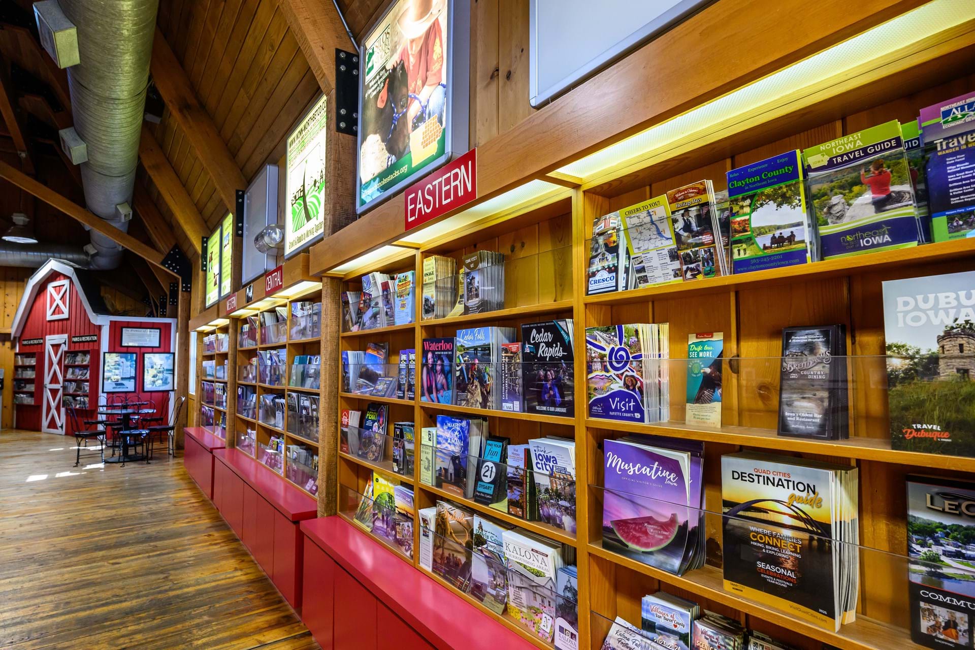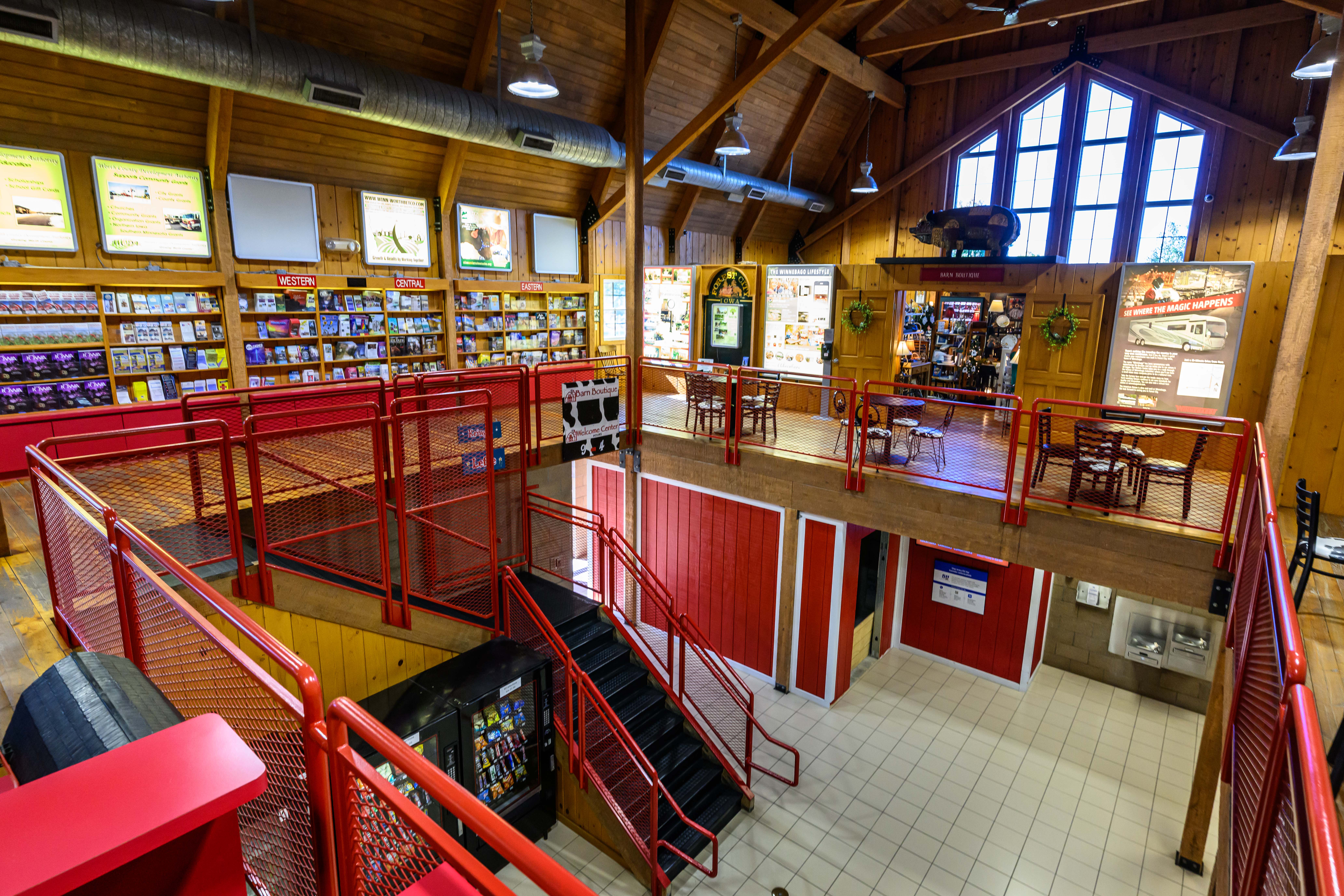 Top of Iowa Welcome Center features travel information, the Barn Boutique gift shop and a Patriotic Rock honoring women in the military. Rest area open 24 hours with restrooms, free wi-fi, vending machines, picnic tables, grills, walking path and pet area. Abundant parking for RVs, vehicles towing trailers & motor coaches.