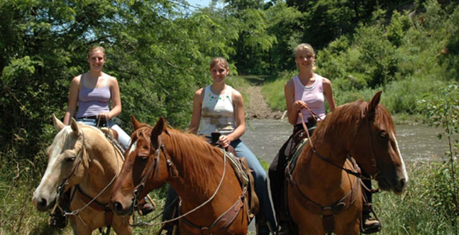 Horses are welcome on 6 miles of professionally built equestrian-specific trails and 17 miles of shared-use trails. A $10 per day trail use fee to assist with trail maintenance can be paid at any trailhead. Yearlong passes are available. Equestrian campground has camp sites that are set up for horse trailers at Oak Ridge Campground. Horse corals are available for rent for $8.00 a day at Oak Ridge Campground, River Campground, 805 River Cabin, and Oak Ridge House. The River Campground pens also serve those staying at the Woodland Carriage House. The 805 River Cabin has horse pens and a yard available to accommodate horses overnight. There is plenty of day parking as well as an exercise corral that is available for use. Water is available from hydrants or fountains for horses. A restroom and shower house facility is available as well. Over twenty miles of trails open to equestrians, six miles of which are dedicated for equestrian and pedestrian use only. Must bring your own horse. 2026 Equestrian Passes: Annual Equestrian Pass: $50 Annual Family Equestrian Pass: $150 Valid for Up to 5 Family Members Only.