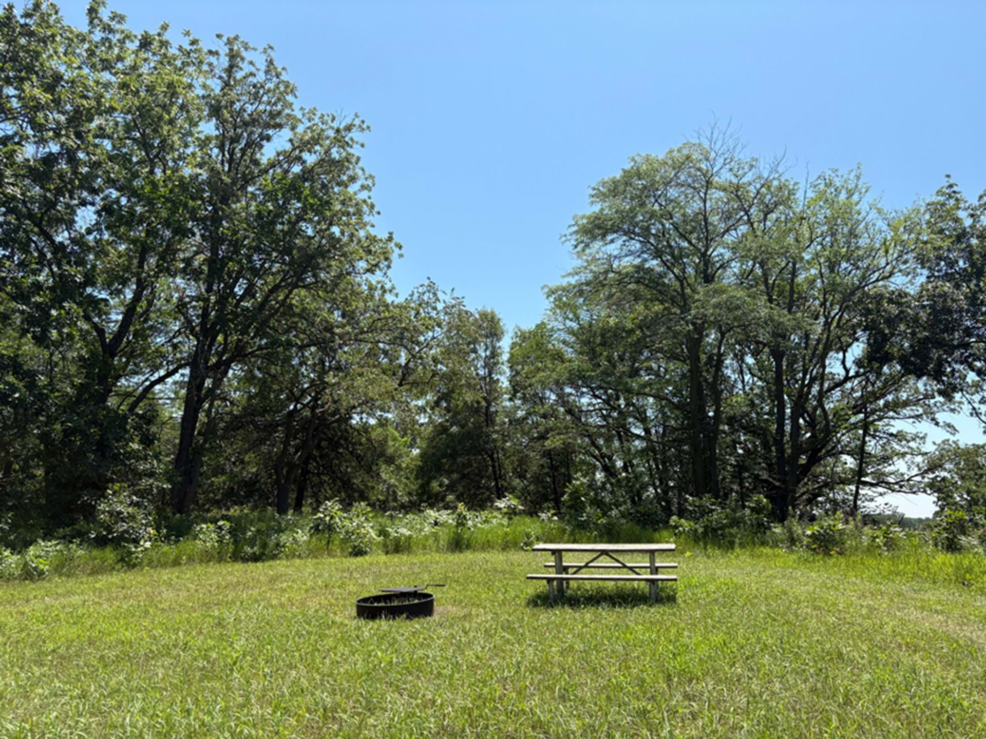 Primitive Campsite with fire ring and picnic table.